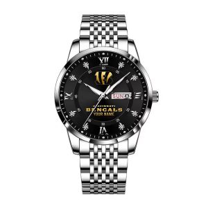 With the launch of the exclusive Made-to-Order service, you can make your watch unique by not only having your special Cincinnati Bengals Emblem but also your Name printed on the watch. Elevate your style with our custom watches featuring your favorite car logo. Meticulously crafted for durability and water resistance, these watches are the perfect item for daily use. Discover the ultimate combination of luxury, utility, and personalization!