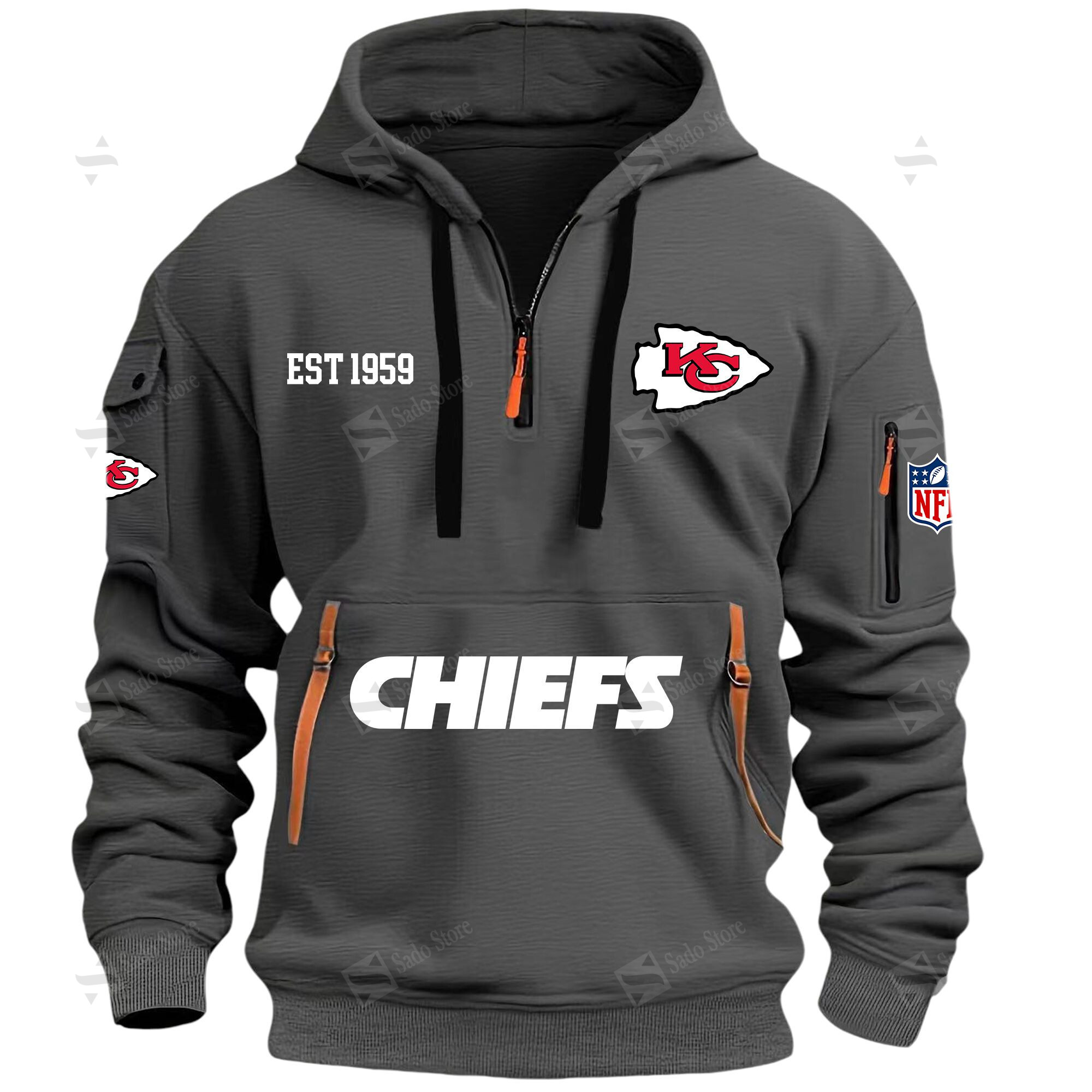 Hi there!! Are you looking at our Kansas City Chiefs Hoodies. These Hoodiess are unique, made with love with the shining Kansas City Chiefs emblem on it. The Kansas City Chiefs Emblem on the Hoodies makes it a perfect item for any Kansas City Chiefs Lovers.