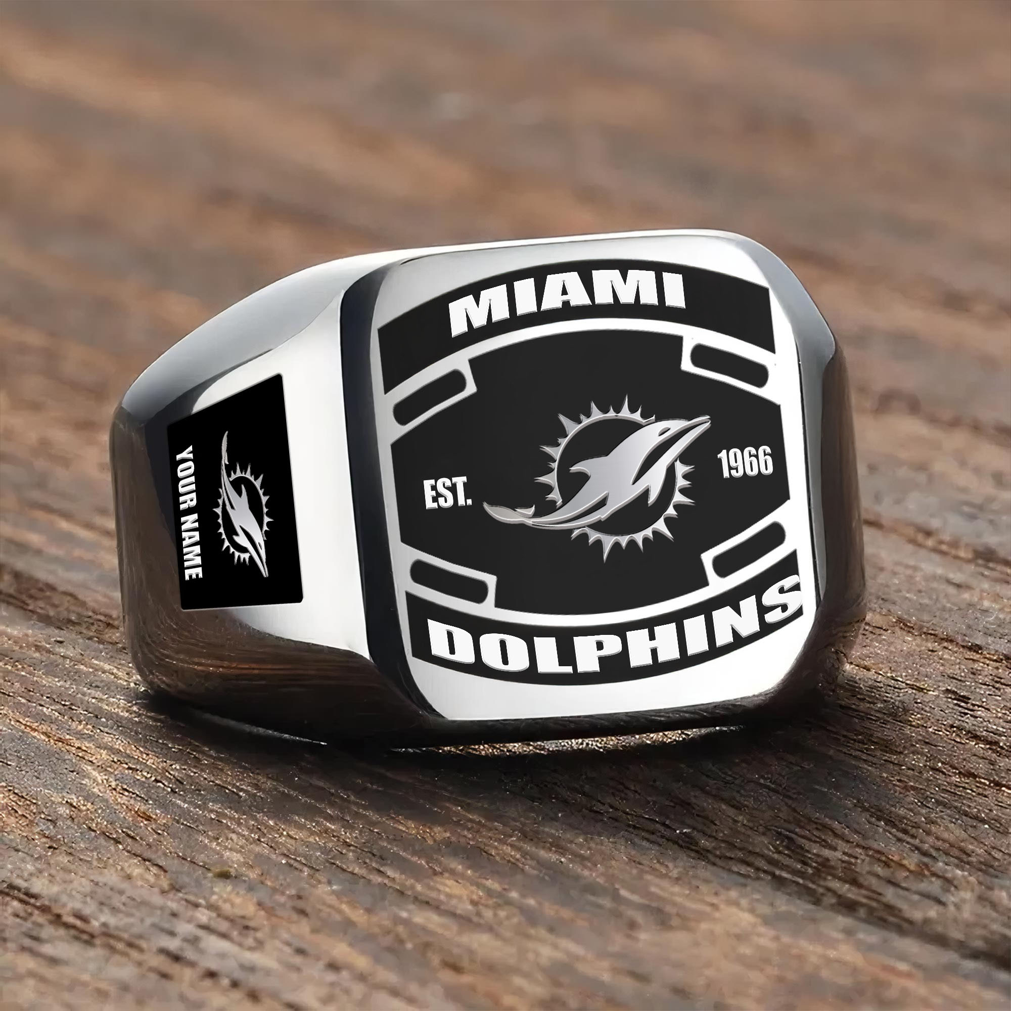 Hi there!! Are you looking at our Miami Dolphins Ring. These Ring are unique, made with love, and they are perfect accessories for your outfit. The Miami Dolphins Emblem on the Ring makes it a perfect item for any Miami Dolphins Lovers.